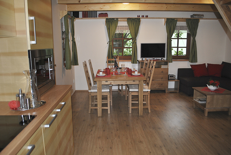 The ski lifts of the ski resort are situated within walking distance. Winter sports fans will be pleased with many kilometres of regularly groomed cross-country skiing tracks. The village of Deštné is a perfect base to startboth winter and summer trips. Hiking, cycling or educational trips are popular because there are lots of interesting places to explore in the region. The nearest destinations are for example the picturesque valley Luisino údolí, the mountain lodges Masarykova chata and Šerlišský Mlýn or the Polish ski resort Zielenec. The offer of various sport and culture activities in Deštné v Orlických horách all year long is almost unlimited. For further information visit the official info website www.destne.info or the ski resort website www.skicentrumdestne.cz.