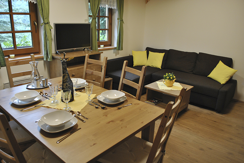 Experience a holiday in ourprivately owned property! We provide year-round accommodation in three separate cosy chalets for up to 4 people each. The chalets are located in a quiet area in Deštné v Orlických horách - Zákoutí (720 m.a.s.l.), at the foot of the highest mountain Velká Deštná (1115 m.a.s.l.).